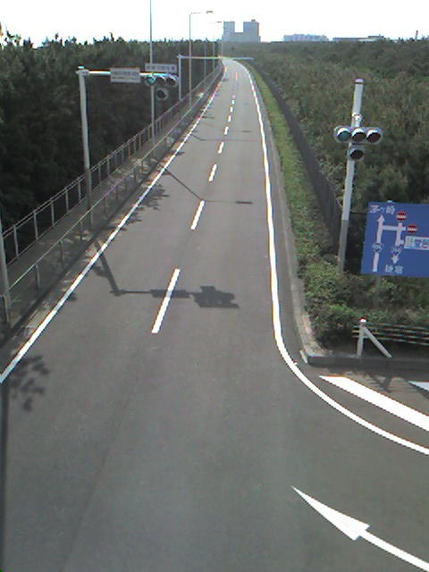 最終シケイン出口からホームストレート国道134号下り車線を望む。残念ながら道幅はモナコより狭い。防砂林を跨いで仮設スタンドを設置できるか?