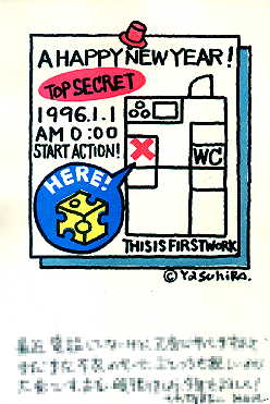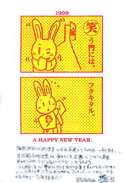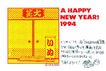 “おおにわ画廊”,“公道天国”作者の友人でデザイナー/イラストレーターの谷 安浩君が、長年に亙り作者に送ってくれている年賀状の一部を、送り主本人の了承の許に公開します。